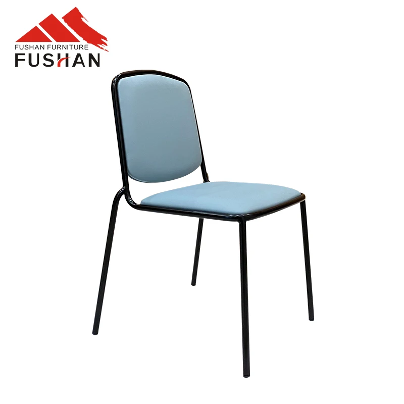 2022 FUSHAN Home Furniture Stackable Dining Chairs PU Leather Fabric with Metal Leg