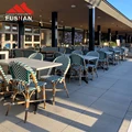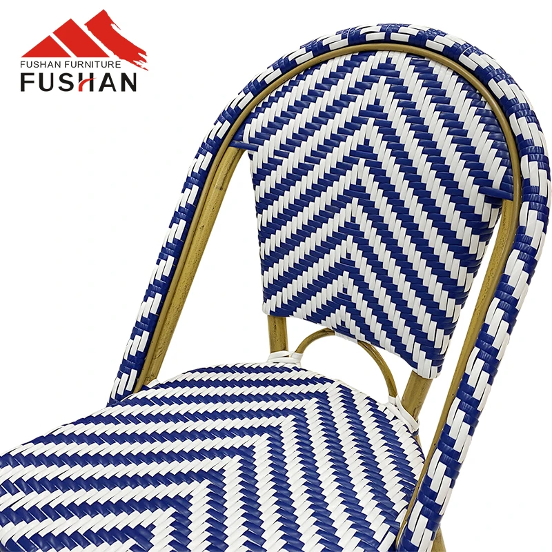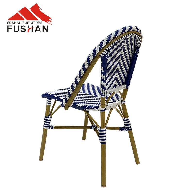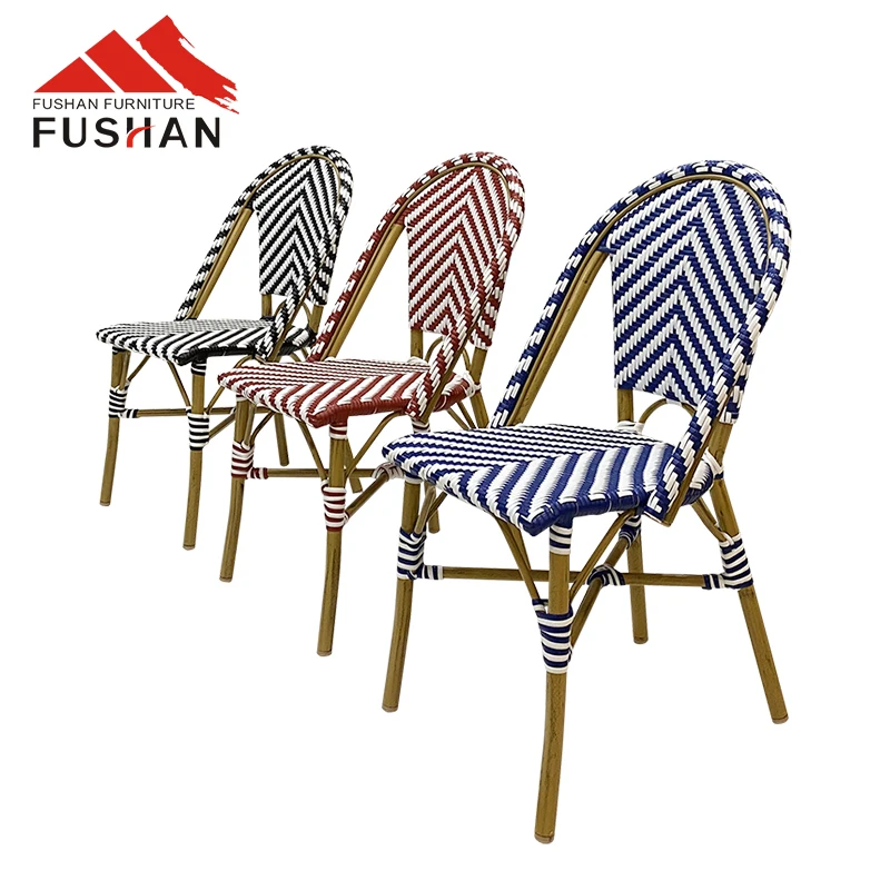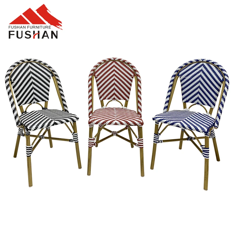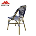 Fresh style bistro vintage aluminum outdoor dining chair garden used stackable woven rattan chairs cafe metal chairs