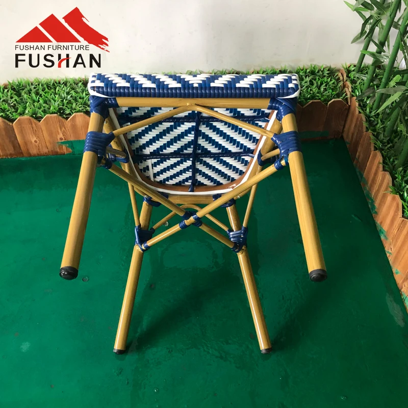Fushan furniture metal frame curved comfortable blue woven rattan outdoor dining chair