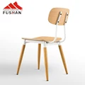Fushan Furniture Modern Minimalist Design Original Wood Color Dining Chair White Metal Frame Dining Chair Furniture