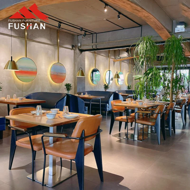 FUSHAN Industrial Style Metal Armchair Restaurant Dining Chair