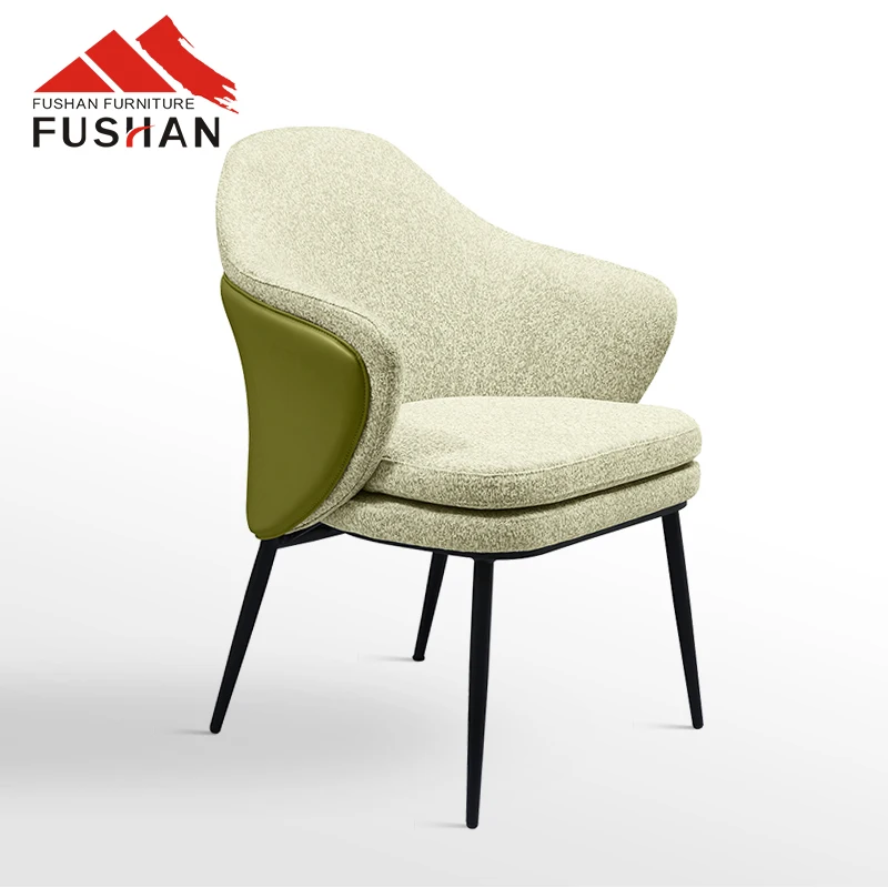 FUSHAN FURNITURE luxury metal frame dining chair PU leather fabric upholstered leisure chair