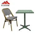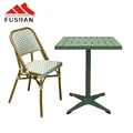 Green Vintage Wicker picnic Balcony Bar Stool Cane Furniture Rattan Outdoor Garden Cafe Bistro Chair and table