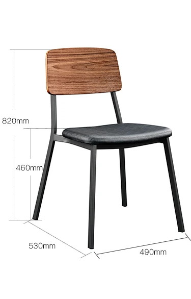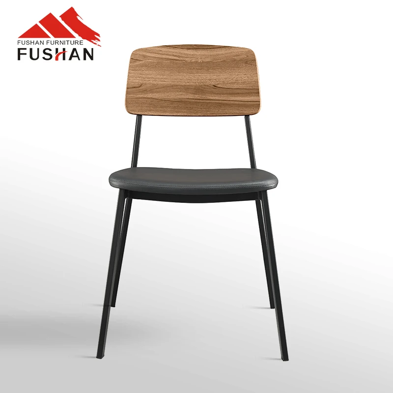 Modern Simple Factory Wholesale High Quality Black Metal Base Upholstered Wood Grain Back Coffee Shop Restaurant Dining Chair
