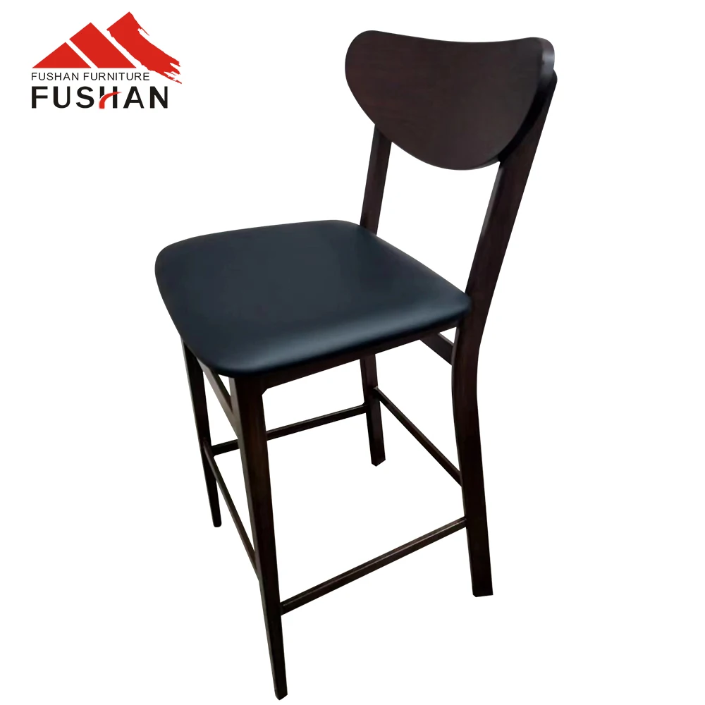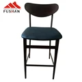 Simple Nordic high bar stool pure solid wood seat cushion metal frame high bar stool restaurant cafe bar chair
