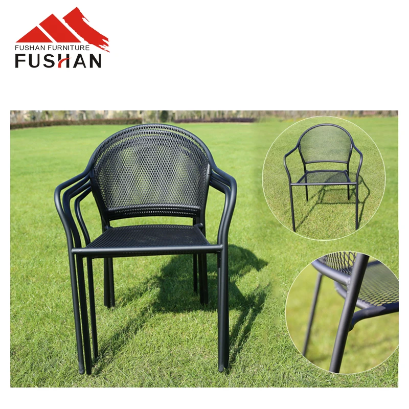 Wholesale high quality outdoor garden chair stackable leisure chair patio dining chair metal frame with arms for coffee shop
