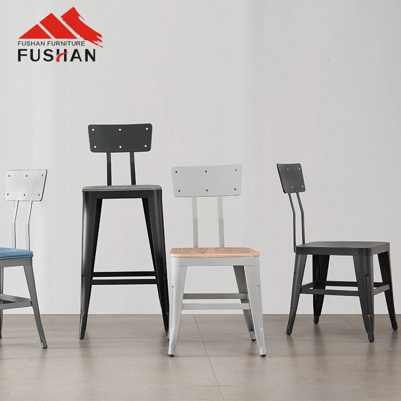 Wholesale high quality vintage design french industrial cafe bistro chairs wood seat restaurant metal chair