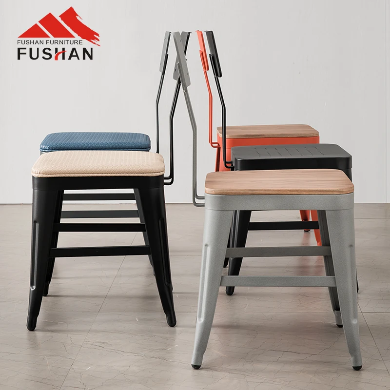 Wholesale high quality vintage design french industrial cafe bistro chairs wood seat restaurant metal chair